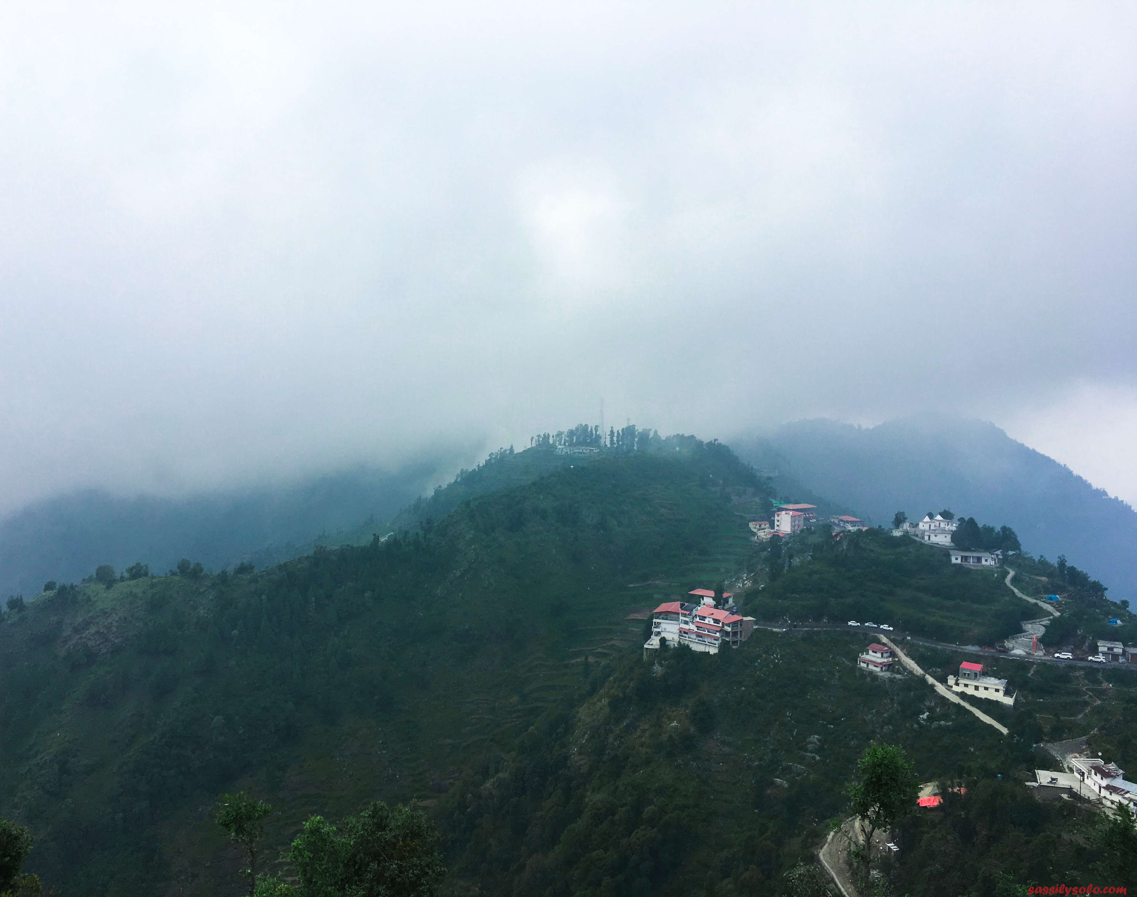 The road was in a perfect condition and ran alongside an awesome elevated view of the whole of Uttarakhand. The clouds flew with us and for a minute made us totally forget about the screeching hot sun.